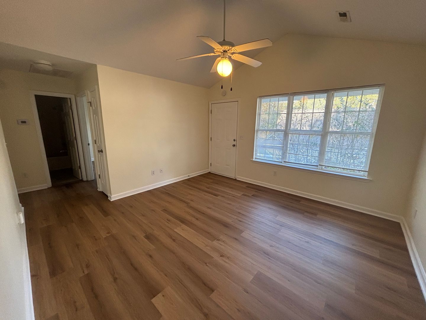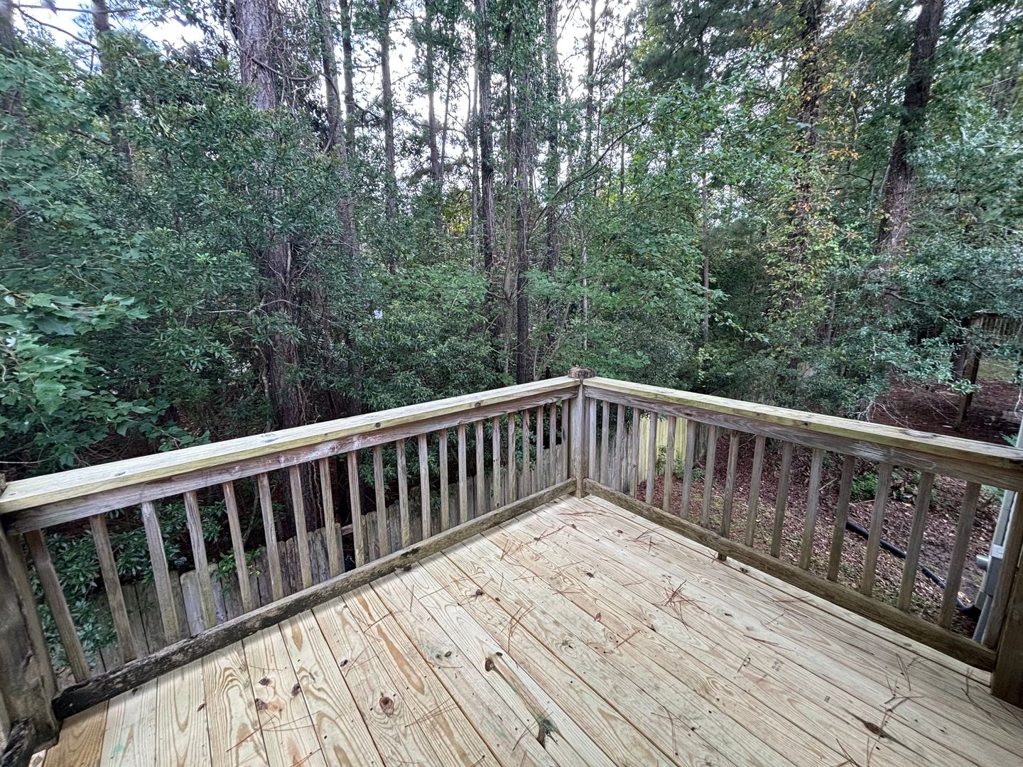 Discover an exceptional living opportunity in this newly renovated 3-bedroom, 3-bathroom garage apartment, meticulously updated for comfort and style. Step inside to find brand-new wood grain LVP flooring extending throughout the entire home, and LVP Tile in the bathrooms, complemented by a fresh coat of paint in every room. The eat-in kitchen opens onto a private deck, featuring new beautifully stained decking, perfect for morning coffee or evening relaxation. This versatile layout offers both privacy and convenience: the upper level boasts two spacious bedrooms and two full bathrooms, while the lower level provides an additional bedroom and bathroom with its own private, separate entrance – ideal for a home office, guest suite, or independent living space. A generously-sized laundry room (hookups only - washer/dryer not provided) is also conveniently located on the bottom level. Parking is never a concern with plenty of space available, including one dedicated garage bay for tenants, additional driveway parking, and another garage bay reserved for owner storage (negotiable use of second bay based on increased monthly rate). Beyond the apartment's charm, its unbeatable central location offers easy access to a vibrant array of dining, entertainment, and shopping options, along with convenient public transportation. You're just 10 minutes from the sun-drenched beach, a mere 5 minutes from bustling Historic Downtown Wilmington, and only 5 minutes from UNCW. Don't miss out on this rare deal for a prime, move-in-ready living space! Landscaping included.