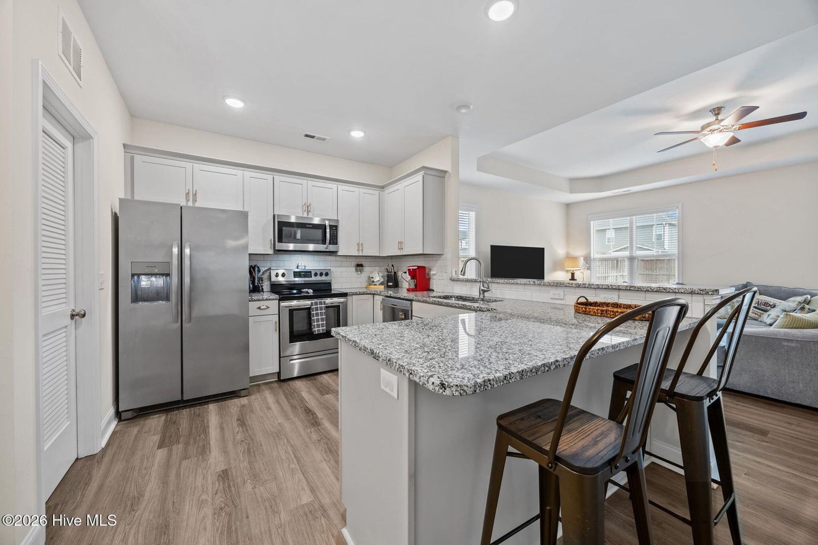 Welcome home to this unfurnished, charming, impeccably maintained Isla plan by Stevens Fine Homes—where effortless one‑level living meets timeless style. The light‑filled open floor plan greets you, offering a seamless blend of relaxed family life and sophisticated entertaining. The heart of the residence is the chef‑inspired kitchen, boasting gleaming granite countertops, a generous breakfast bar, and a massive walk‑in pantry that makes stocking up a breeze. Stainless‑steel appliances shine alongside a brand‑new refrigerator, washer, and dryer, all included for a truly move‑in ready experience.