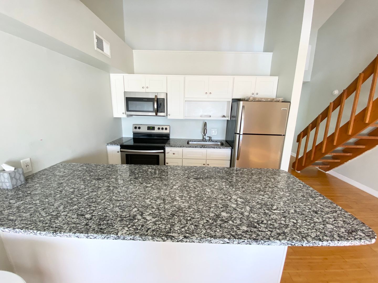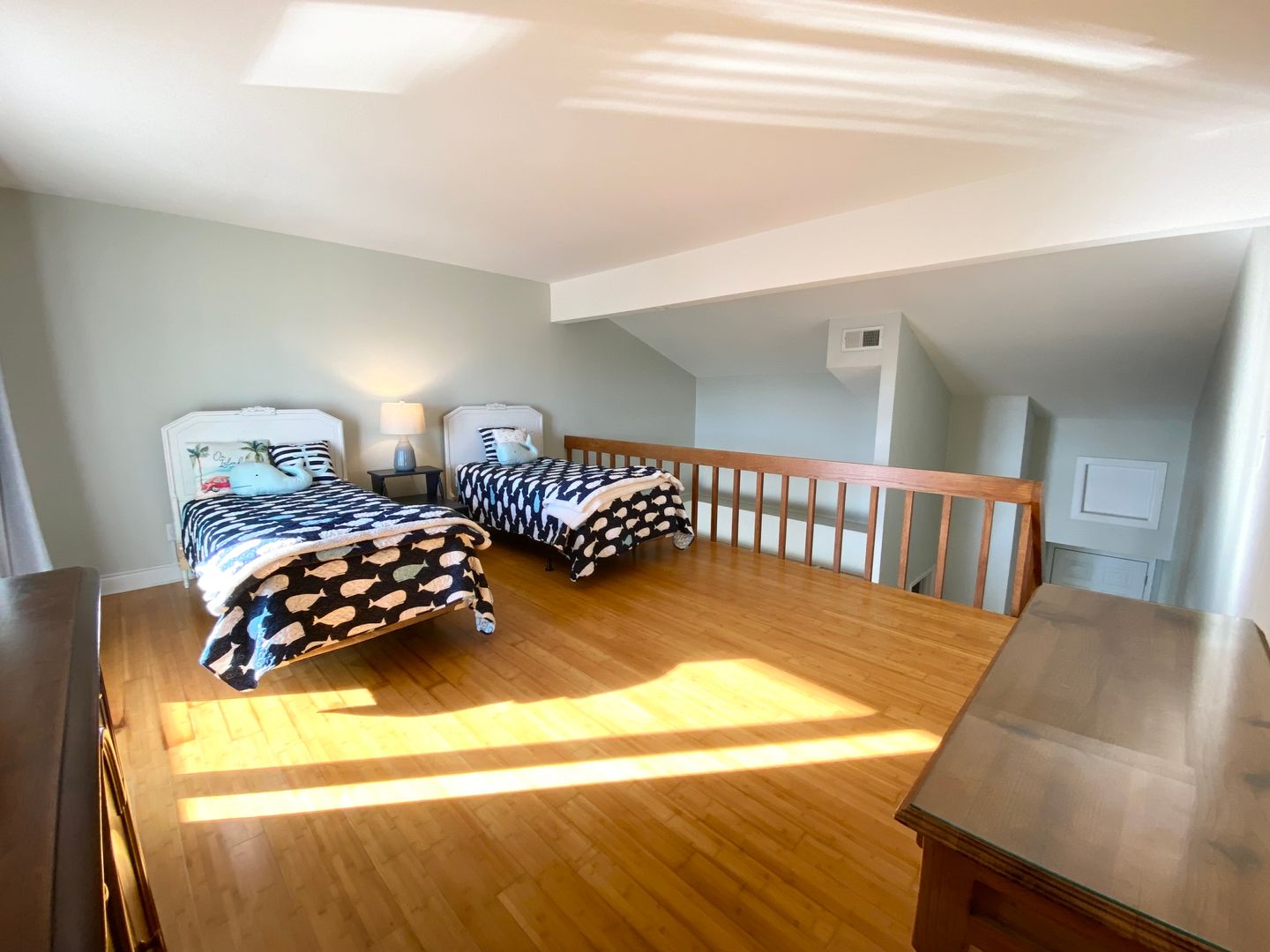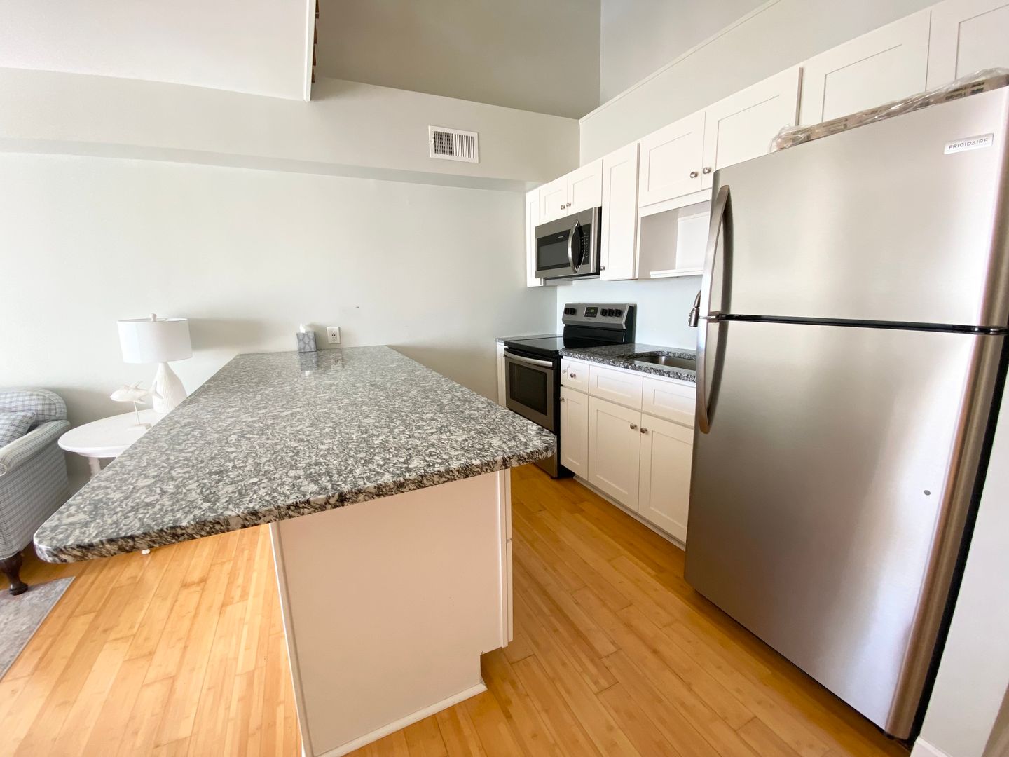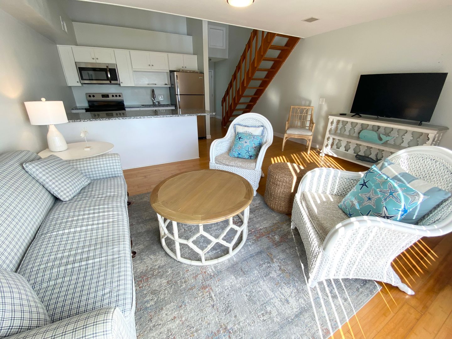 This semi-furnished apartment is absolutely adorable! It is a one bedroom, one bathroom, but it has a loft that can be used as another bedroom or family/gathering room. There is a two level balcony/deck, from which the ocean view is spectacular at sunrise and sunset. There are hardwood floors and granite countertops in the kitchen, and lovely tilework in the bathroom. The water and sewer are included in the rent, and there is a shared laundry room. You don't want to miss out on this opportunity!
